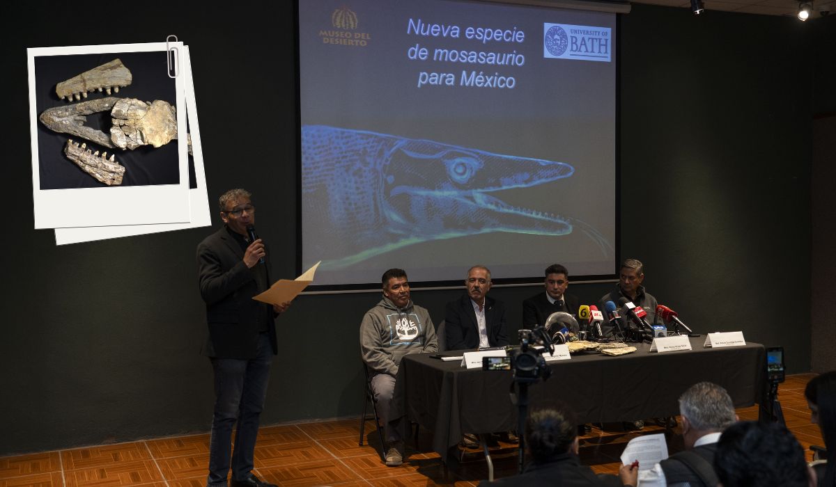 En rueda de prensa, el Museo del Desierto dio a conocer todos los detalles sobre el descubrimiento en México de un nuevo mosasaurio depredador de hace 70 millones de años.